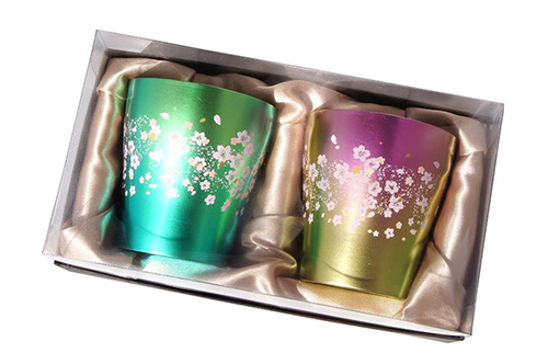 二重タンブラー 華チタン サクラサク グリーン・ピンク セット