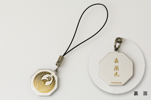 チタン武将家紋ストラップ  「鶴の丸」(鶴丸紋) 森蘭丸 [TKS-213]